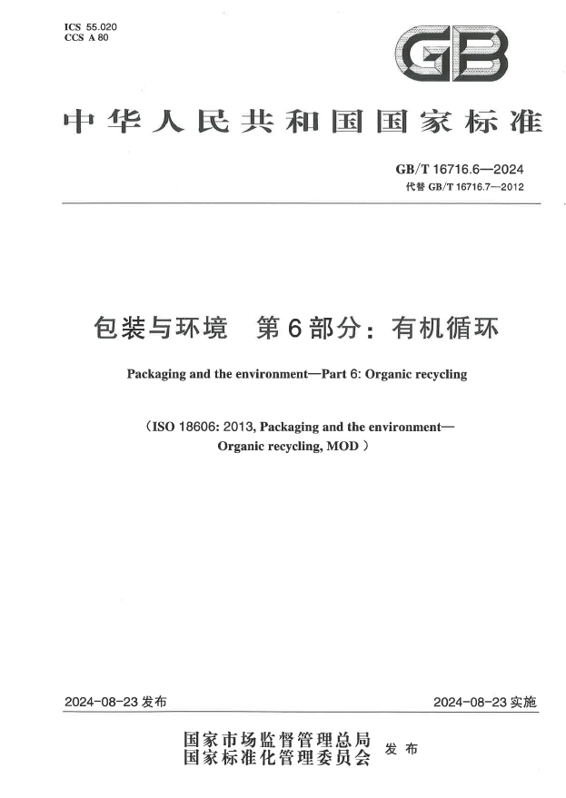 該國家標準《GBT 16716.6 - 2024 包裝與環境 第 6 部分:有機循環》已正式發布并實施。